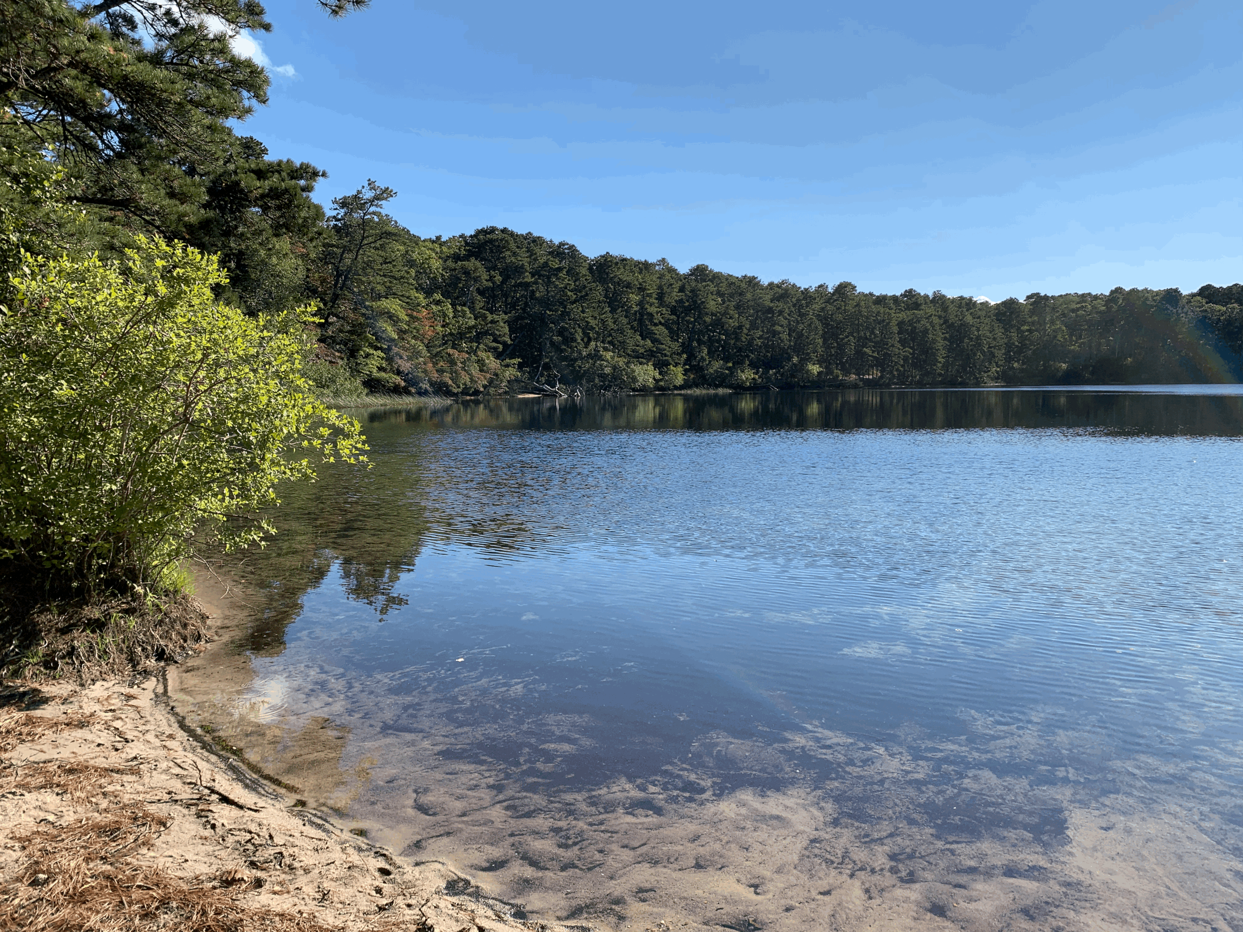 The poem: “Long Afternoon at Little Sister Pond” was, no doubt written about one of Cape Cod’s many “kettle ponds.” Those sandy bottomed, clear and crystalline, round bodies of freshwater bordered by richly dark evergreens. On an early spring afternoon, I am swimming the circumference; a rufous-sided towhee following along—flying and singing “drink your teeeeeaaa.” Little fishes nibbling at my toes.